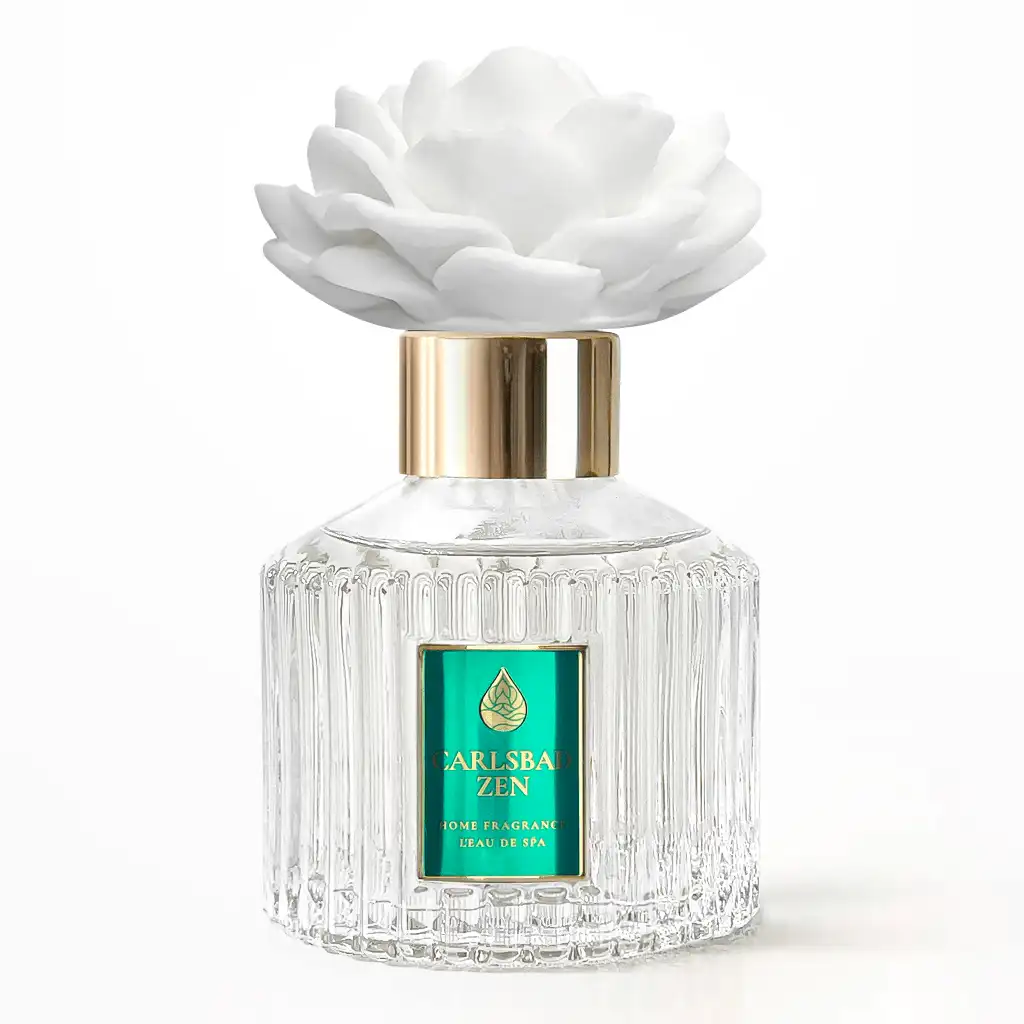 Intoxicating fragrance Carlsbad Zen creates an atmosphere of absolute balance and spiritual cleansing. It opens with a delicate touch of anise and powdery almond notes of heliotrope. The heart reveals the exotic warmth of sun-drenched ginger lilies, spiced with a whisper of clove and cinnamon. A soothing base of creamy vanilla, white musk, and balsamic patchouli completes this harmonious experience. The set includes high-quality reeds that resist warping for optimal diffusion, and an elegant rose made from porous material which serves as both decoration and an efficient diffuser.